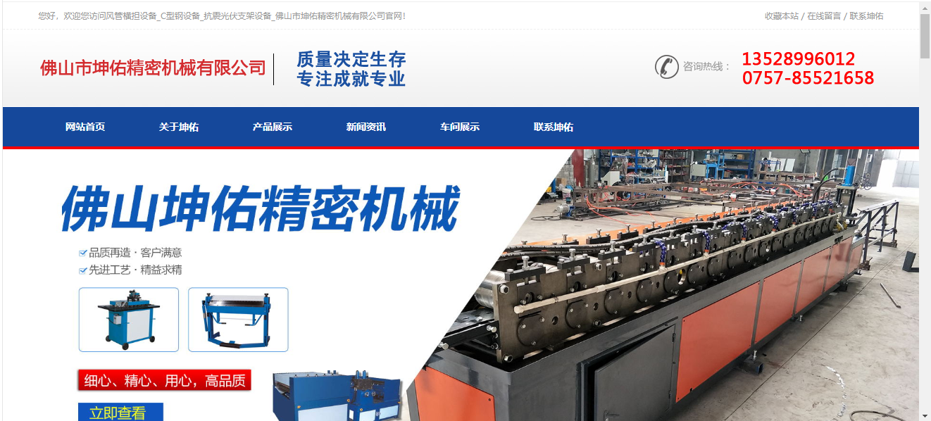 今天讓我們一起來分享一下風(fēng)管生產(chǎn)線網(wǎng)站設(shè)計(jì)案例:佛山市坤佑精密機(jī)械有限公司