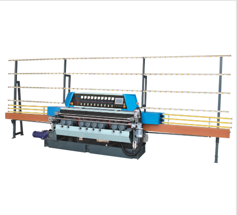 該機(jī)為九磨頭PLC控制玻璃斜邊磨邊機(jī),可一次完成粗、精磨,拋光后的效果與鏡面一致,對(duì)角度精確??刂葡到y(tǒng)采用PLC控制,可自動(dòng)、手換。人機(jī)界面清楚顯示玻璃厚度、斜邊寬度及角度、玻璃厚度和加工速度等各種參數(shù),傳送速度采用變頻調(diào)整。鏈板采用加厚鋼板與導(dǎo)軌鑲條經(jīng)多項(xiàng)特殊工藝制作而成,具有超強(qiáng)耐磨,不易變形,運(yùn)行平穩(wěn)等特點(diǎn)。鑄造堅(jiān)固機(jī)身,高精度、低能耗電機(jī),適用于大批量玻璃磨邊加工。