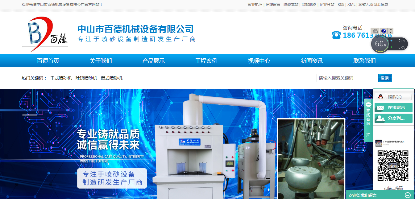 今日分享濕式噴砂機(jī)網(wǎng)站建設(shè)案例:中山市百德機(jī)械設(shè)備有限公司位于經(jīng)濟(jì)發(fā)達(dá)的沿海城市珠三角城市--中山,為廣東及全國各地專業(yè)從事各種類型噴砂設(shè)備的研發(fā)、生產(chǎn)和設(shè)計(jì),提供齊全的表面處理材料的企業(yè)。改進(jìn)創(chuàng)新,精益求精,全心全意為客戶服務(wù)是我們的經(jīng)營理念。