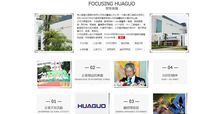 響應(yīng)式網(wǎng)站改版作品案例賞析之佛山華國(guó)光學(xué)器材有限公司系由臺(tái)灣上市公司