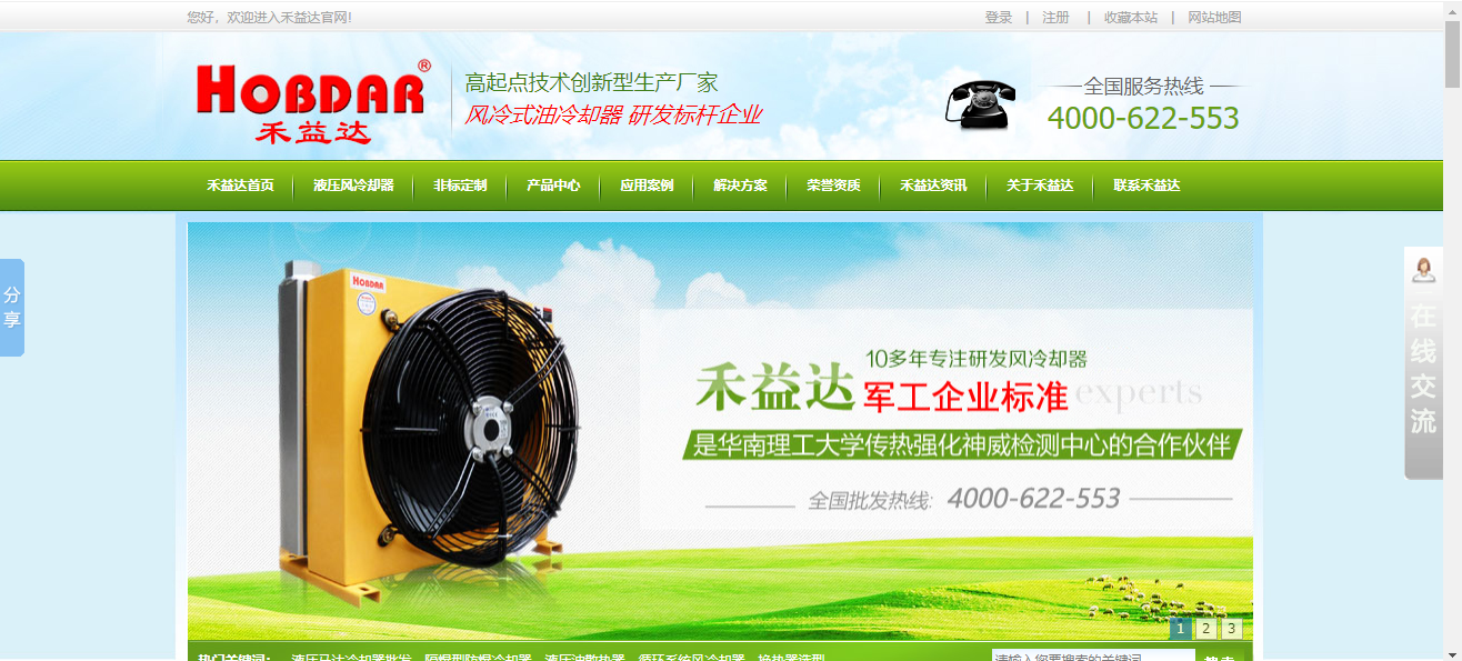 今天讓我們一起來分享一下液壓風(fēng)冷卻器網(wǎng)站設(shè)計(jì)案例: 禾益達(dá)公司