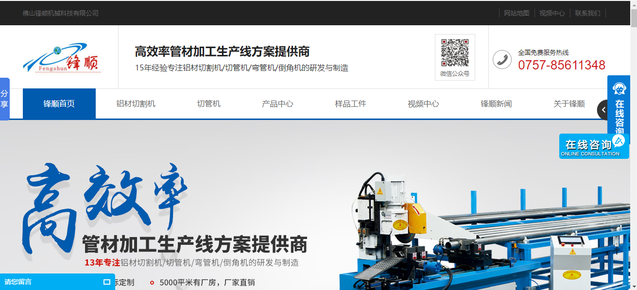 今天讓我們一起來分享一下切管機網站設計案例:佛山鋒順機械科技有限公司