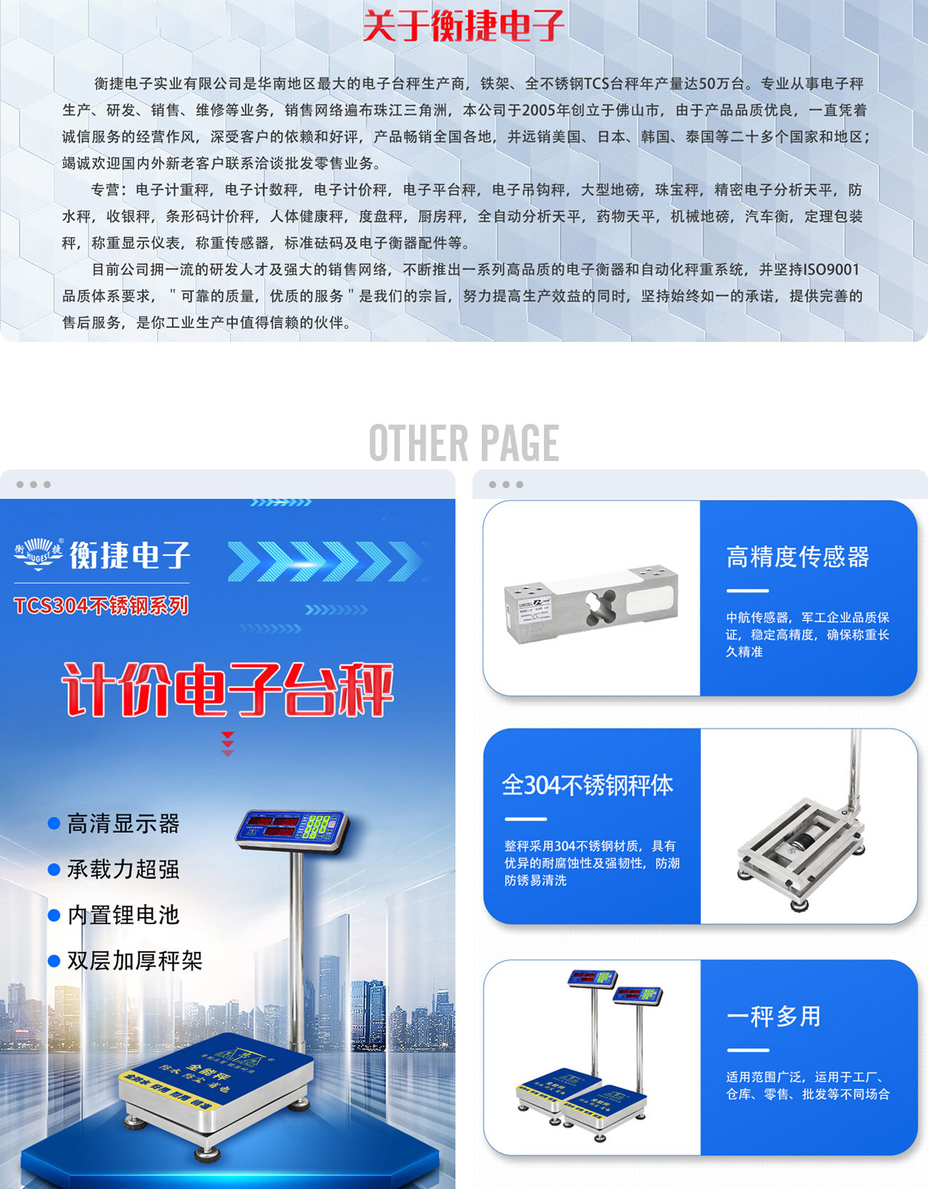 衡捷電子實(shí)業(yè)有限公司是華南地區(qū)較大的電子臺(tái)秤生產(chǎn)商,鐵架、全不銹鋼TCS臺(tái)秤年產(chǎn)量達(dá)50萬(wàn)臺(tái)。專業(yè)從事電子秤生產(chǎn)、研發(fā)、銷售、維修等業(yè)務(wù),銷售網(wǎng)絡(luò)遍布珠江三角洲,本公司于2005年創(chuàng)立于佛山市,由于產(chǎn)品品質(zhì)優(yōu)良,一直憑著誠(chéng)信服務(wù)的經(jīng)營(yíng)作風(fēng),深受客戶的依賴和好評(píng),產(chǎn)品暢銷全國(guó)各地,并遠(yuǎn)銷美國(guó)、日本、韓國(guó)、泰國(guó)等二十多個(gè)國(guó)家和地區(qū)。