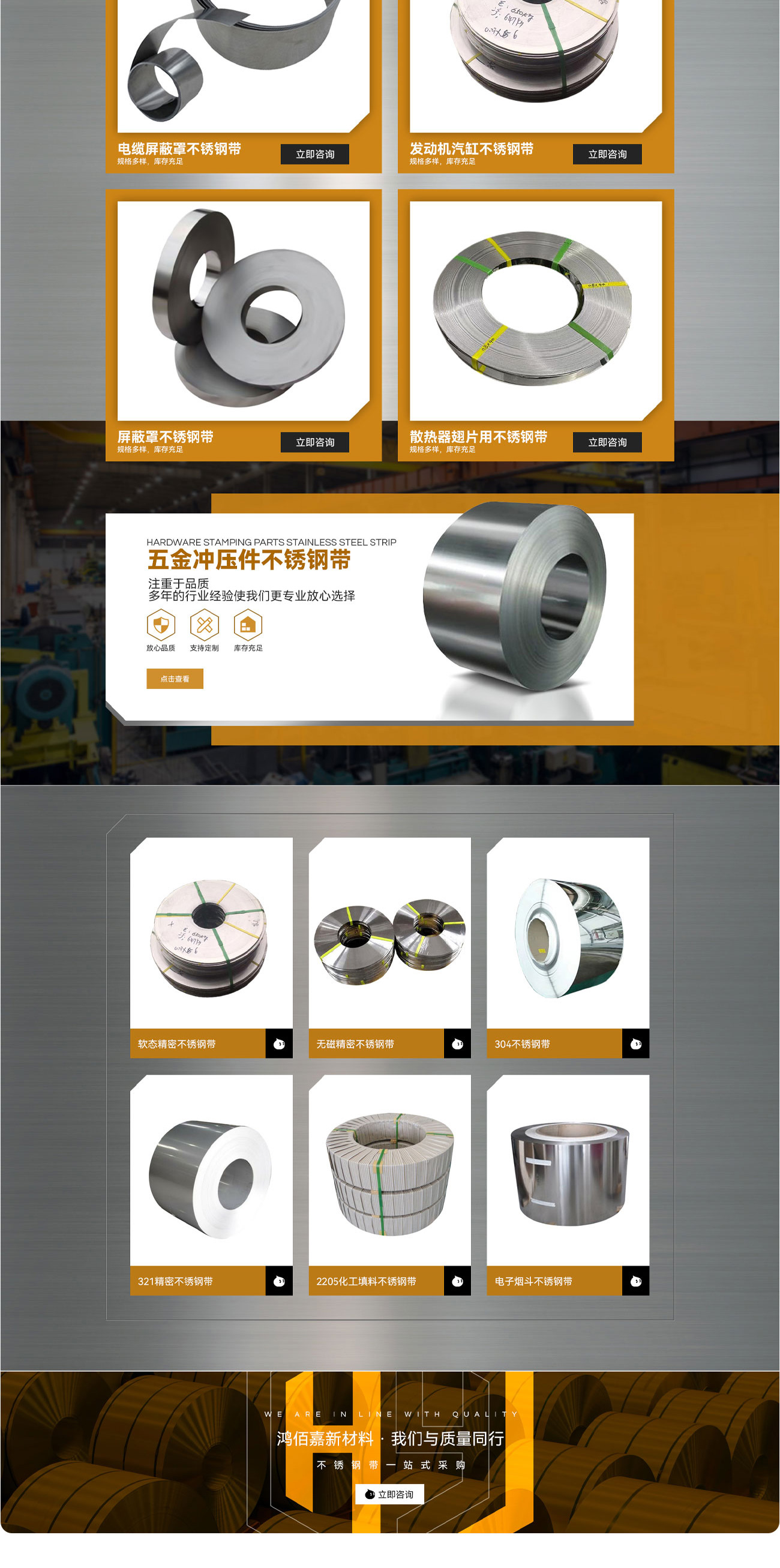 鴻佰嘉新材料專業(yè)生產(chǎn)201/304/316L/321/301/等精密不銹鋼,厚度0.05~3mm,寬度0.1~100cm專為Type-c連接器,金屬雞眼鉚釘,散熱器,金屬波紋管,金屬屏蔽罩,不銹鋼背光源,電子產(chǎn)品,各種沖壓件廠家提供原材料。